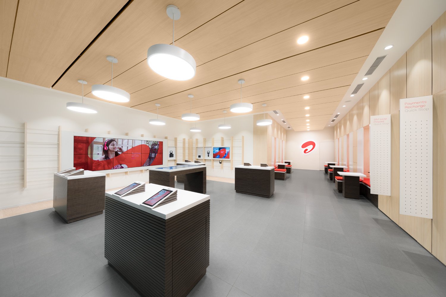 This section showcases the standout elements of the Airtel showroom transformation, emphasizing modern aesthetics, customer-centric layout, and smart design choices. Every element was curated to reflect Airtel’s dynamic brand image while creating an engaging and functional retail environment.